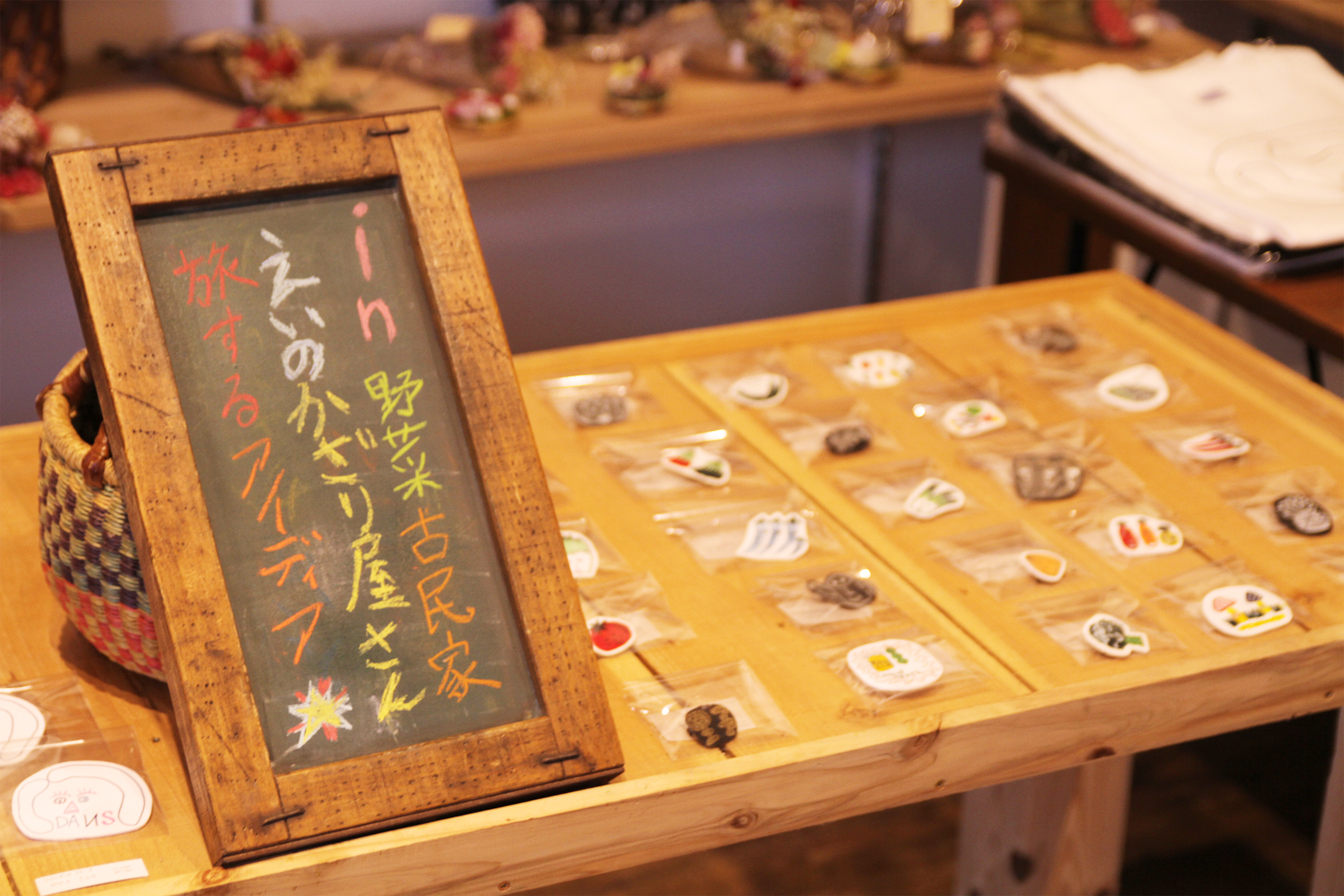 野菜柄のブローチたち。